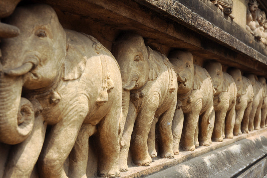 The second curved section with four different animals represents the elephant for intelligence, the horse for a strong mind, the bull for patience and vigour, and the lion for bravery strong enough to conquer lust and follow the transcendental path.